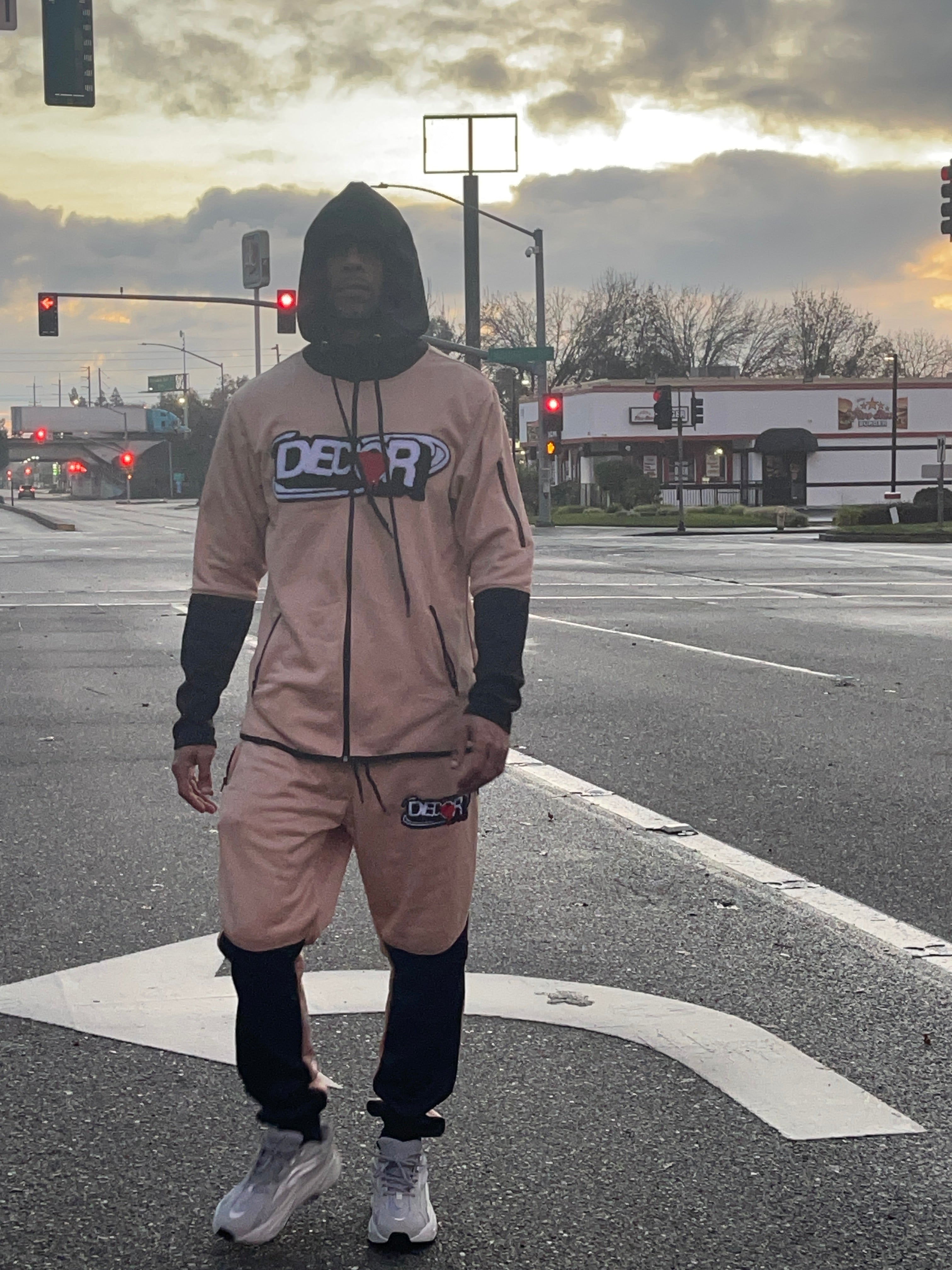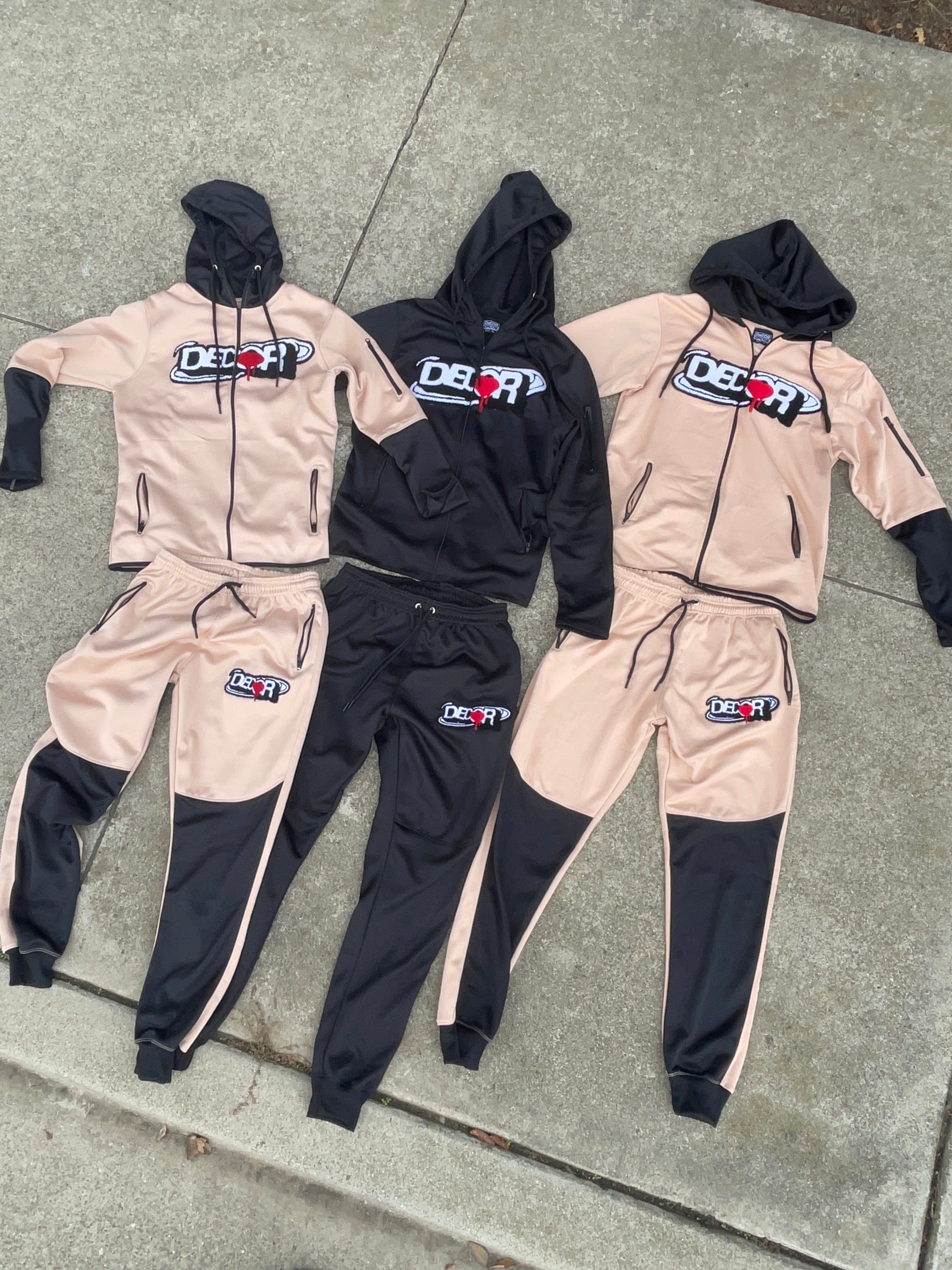 BEIGE/BLACK Unisex 100% Cotton Tech fleece sweatsuit